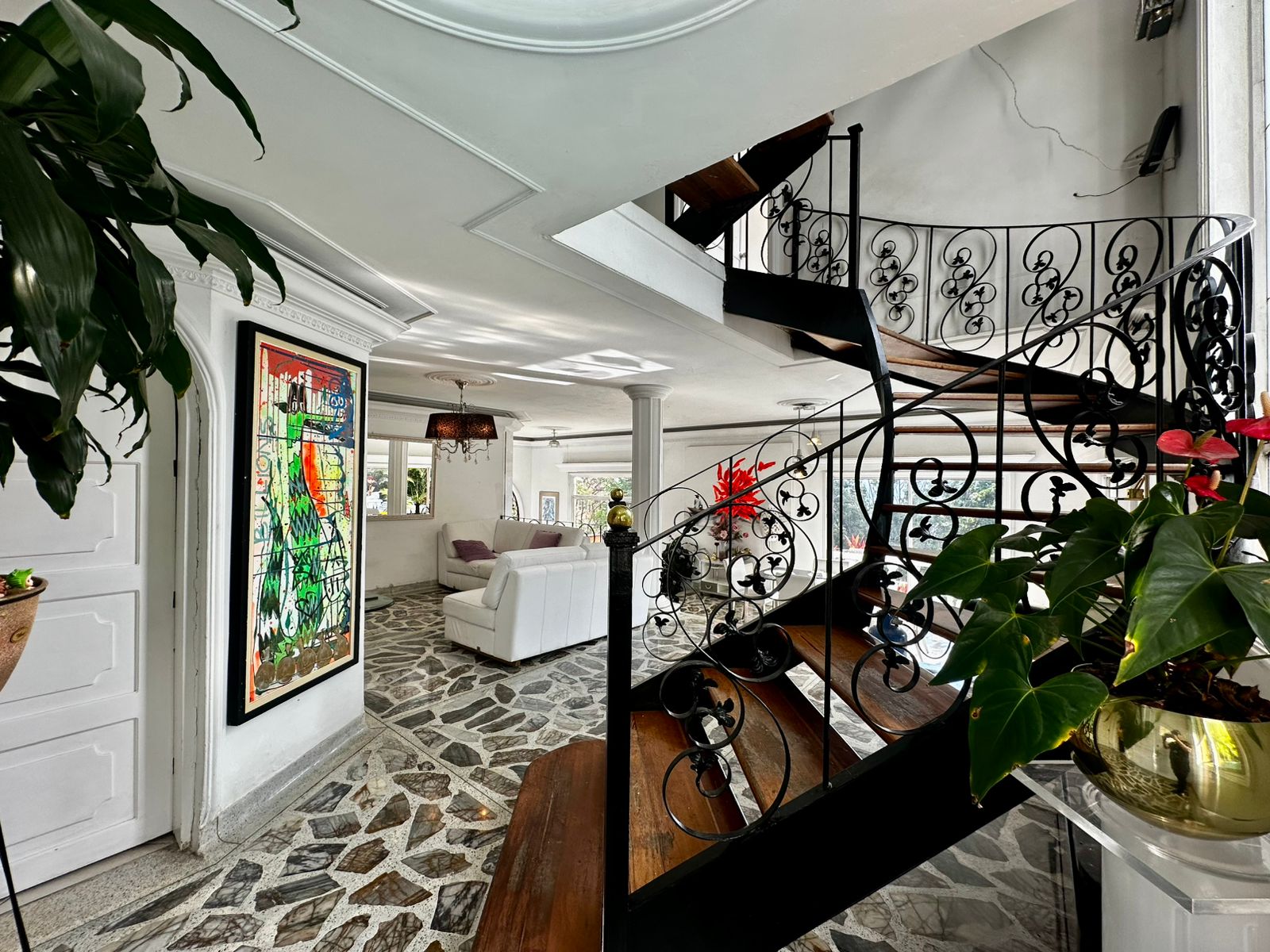 🪵 Escaleras en madera tipo caracol y pisos en baldosa, que aportan calidez y elegancia a los espacios.